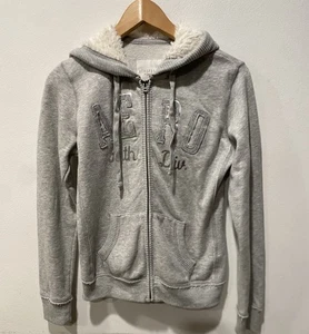 Y2K Aeropostale Faux Fur Sherpa Lined Hoodie women Sz XS Gray Full Zip Up