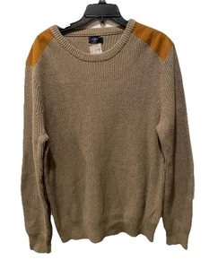 J. Crew Woodsman Men's XL Knit Sweater Shoulder Patches Cotton Crewneck Brown