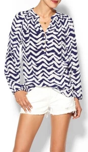 Lilly Pulitzer Elsa 100% Silk Blouse Navy Blue Chevron Print Women's Size Small