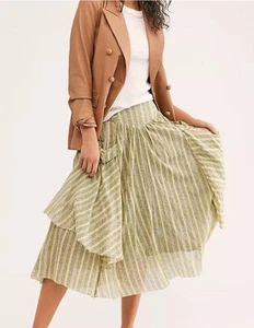 Free People One Elisa Stripe Ruffle Midi Skirt Size Small Boho