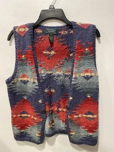 VTG Lauren Ralph Lauren Hand Knit Southwestern Aztec Vest Linen Equestrian Sz S