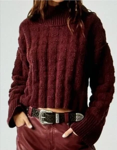 Free People We The Free Soul Searcher Mock Neck Wine Sweater NWT