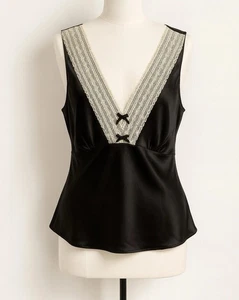 Old Navy Y2K 100% Silk Black Cami Babydoll top lace trim Fairy Whimsigoth Sz XL
