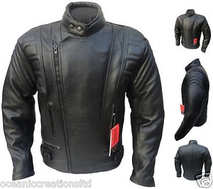Black Armoured Motor Cycle Bike Cruiser Touring Chopper Bikers Leather Jacket