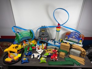 Huge Fisher-Price GeoTrax Lot Tracks Trains Buildings Vehicles Batman Joker Fire