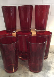Ruby Red Cased Glass Optic Tall Tumblers vintage
