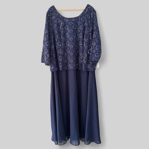 Roamans Womens Formal Dress Gown Size 34W Blue Elbow Sleeve Lace Sequins Lined