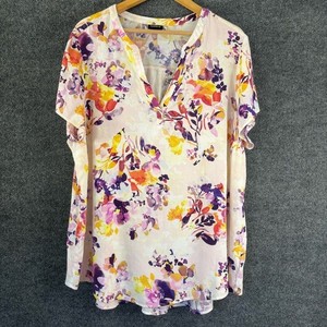 Rose + Olive Womens Floral 3/4 Sleeve Top Size 1X V Neck Office Career Bloomcore