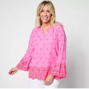 BELLE Kim Gravel Womens Embroidered Daisy Pop Top Size 3X Pink Boho Peasant