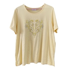 Quacker Factory Women’s Sequined T Shirt Top Size 2X Yellow Short Sleeve Casual