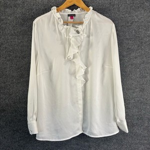 Vince Camuto Womens Ruffle Front Button Up Top Size 2X White Long Sleeve Office