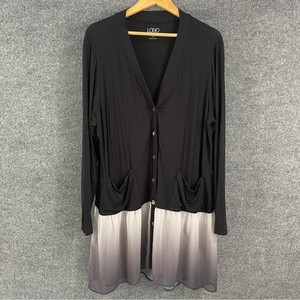 LOGO Lori Goldstein Womens Cardigan Size XL Black Ombre Chiffon Hem Button Front