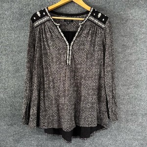 Lucky Brand Womens Embroidered Boho Long Sleeve Top Size 1X Black White Peasant