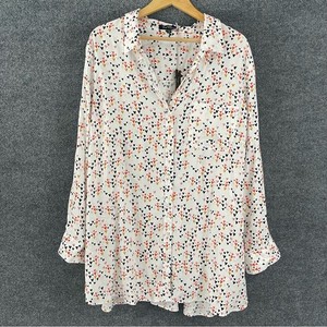 Velvet Heart Womens Heart Print Button Up Top Size 3X White Long Roll Tab Sleeve