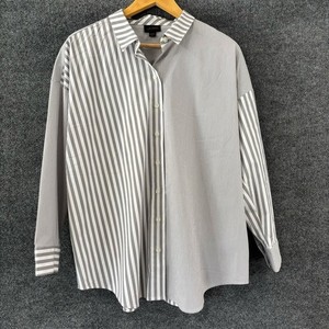 J.Jill Womens Mixed Stripe Button Up Top Size L Petite Gray Office Career