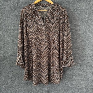Ava & Grace Womens Roll Tab Sleeve Top Size 3X Brown V Neck Office Career