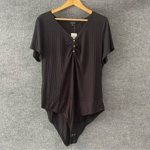 Torrid Womens Ribbed Bodysuit Top Size 3X Black Short Sleeve Casual