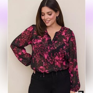 Torrid Womens Dark Floral Clip Dot Top Size 2X Black Pink Office Career
