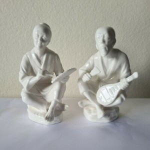 Set of 2 Vtg ENESCO Imports Japan White Porcelain Japanese Man & Woman Figurines