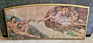 VTG Michael Angelo's Creation Of Adam 21x45 Print Framed Gold Solid Wood Glossed