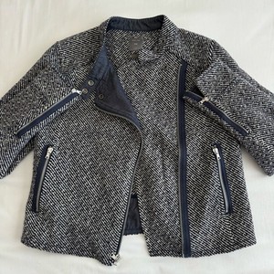 GAP Womens Navy Wool Twill Moto Jacket Asymmetric Cropped Zip Coat Size Medium