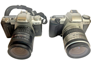 Pentax ZX-30 & ZX-50 35MM Film Camera & Lenses LOT OF 2 PARTS REPAIR - READ!!!
