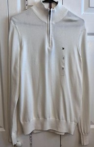 TOMMY HILFIGER Ivory Sweater Mens MEDIUM Pullover 1/4 Zip Cotton READ