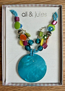 Ali Jules Necklace Earrings Set Costume Jewelry Colorful Teal Green Beads Boxed
