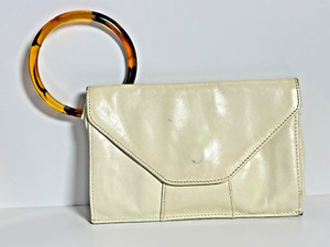 Hobo International Wallet Wristlet Small Cream Leather Ring Handle Tortoise VTG