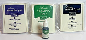 Lot Of 3 Stampin Up Classic Ink Pads & 1 Refill - Purple Green Black