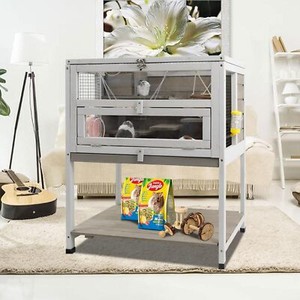 Petscosset Rabbit Hutch Indoor Wooden Bunny Hutch Outdoor with Tray, Gray