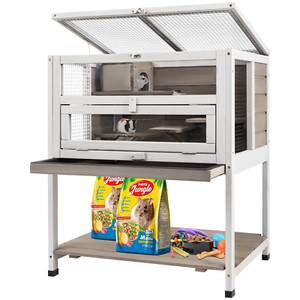 PETSCOSSET Rabbit Hutch Bunny Cage Indoor Guinea Pig House with Tray, Gray