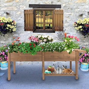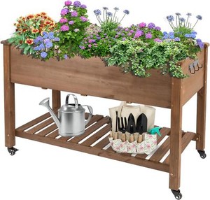 Raised Garden Bed Gardening Elevated Wood Planter with Wheels for Gardening