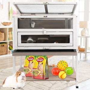 Petscosset 47" L Indoor Wooden Guinea Pig Cage, 2-Story Large Hamster Cage