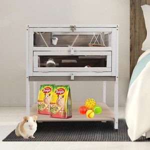 PetsCosset Guinea Pig Cages Wooden Indoor Rabbit Hutch with Detachable Stand
