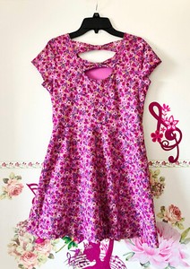 Route66 Purple Floral Rose Mini Flared Back Bow Dress Girls 14 16