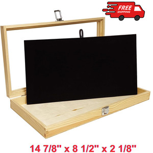 Wooden Jewelry Display Case With Tempered Glass Top Lid & Removable Display Pad
