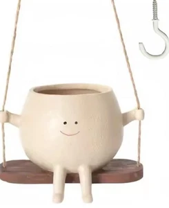 Hanging Smiley Face Planter On A Swing Indoor Outdoor