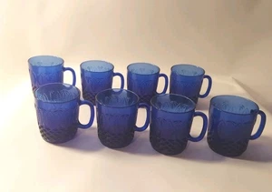 Avon Royal Sapphire Cobalt Blue Glass Coffee Mugs Set of 8 Vintage 10 oz.