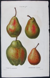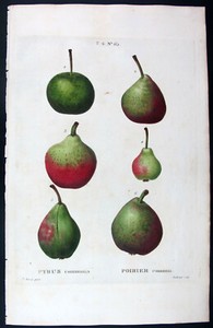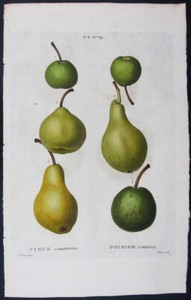 1799,TOP REDOUTE' BESSA HANDPAINTED ENGRAVED FOLIO PYRUS COMMUNIS PEARS UBA