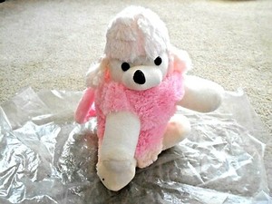 Stuffed Animal Puppy Dog Pajama Bag, Pink & Cream w/handle
