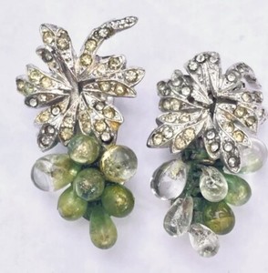VTG LOUIS ROUSSELET Pair POURED GLASS Grapes DRESS CLIPS BROOCH FRANCE