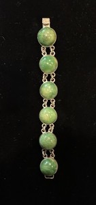 VTG Early MEXICAN JADE Cabochon & STERLING SILVER BRACELET Signed 6.75"