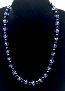 VTG CZECH Geometric ART DECO Black and Blue GLASS NECKLACE