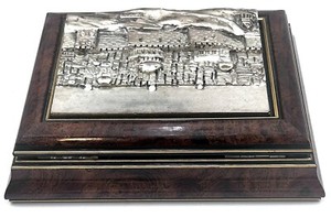Israel Artist Saad Sterling Silver Embossed Relief Jerusalem Hinged Wood Box
