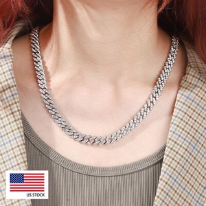 12MM 15MM Hip Hop White Gold Plated Cuban Necklace Iced CZ Out Cuban Link Chain