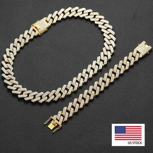 12MM Gold Plated Iced CZ Out Cuban Chain Set Classic Cuban Link Chain/Necklace