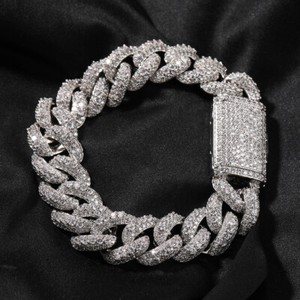 New 15MM White Gold Iced Out CZ Miami Cuban Link Chain For Men Hip Hop Bracelet