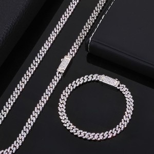 8MM Hip Hop 14K Gold Plated Iced CZ Cuabn Link Chain For Men Necklace Bracelet