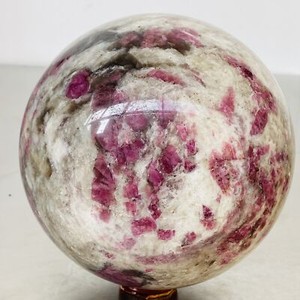 Natural Red Tourmaline Quartz Crystal Stone Sphere Ball Healing 4120G